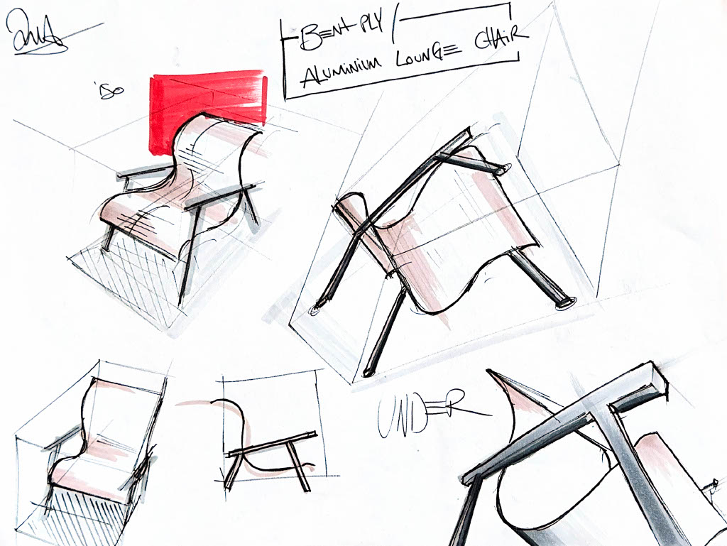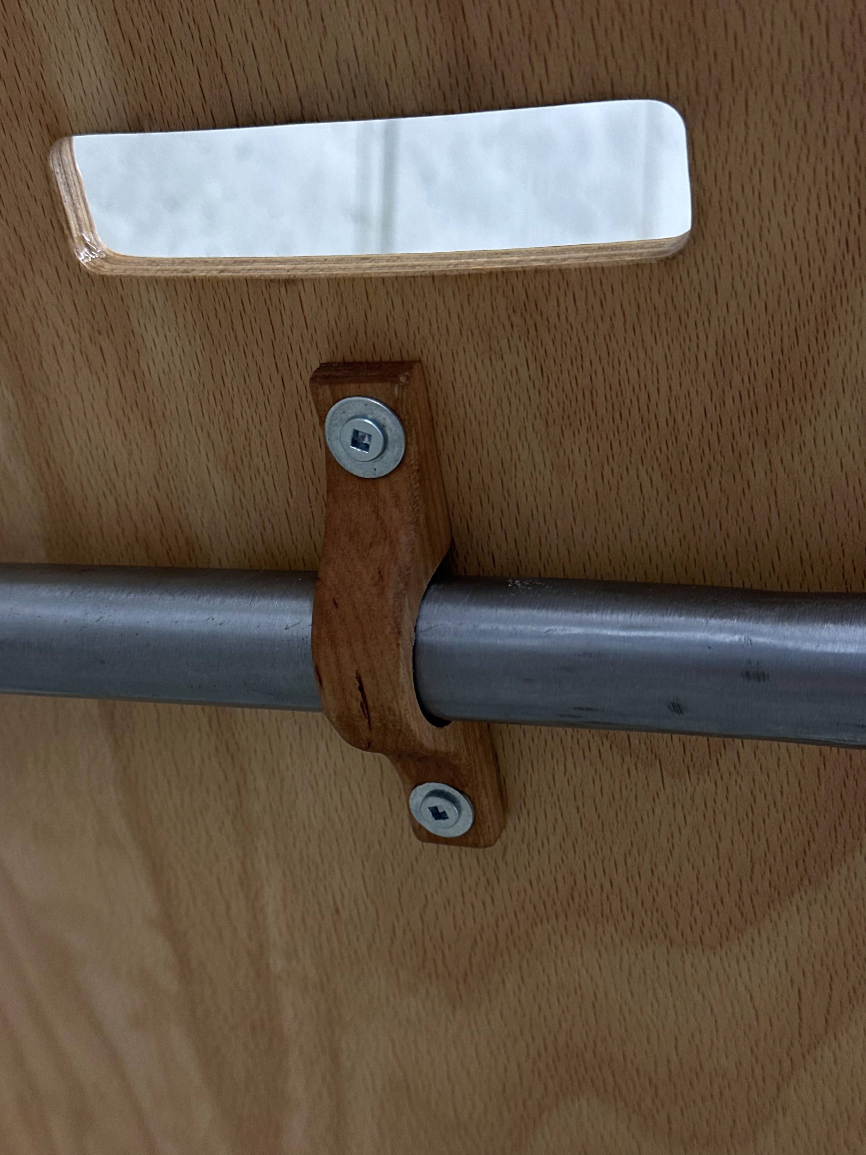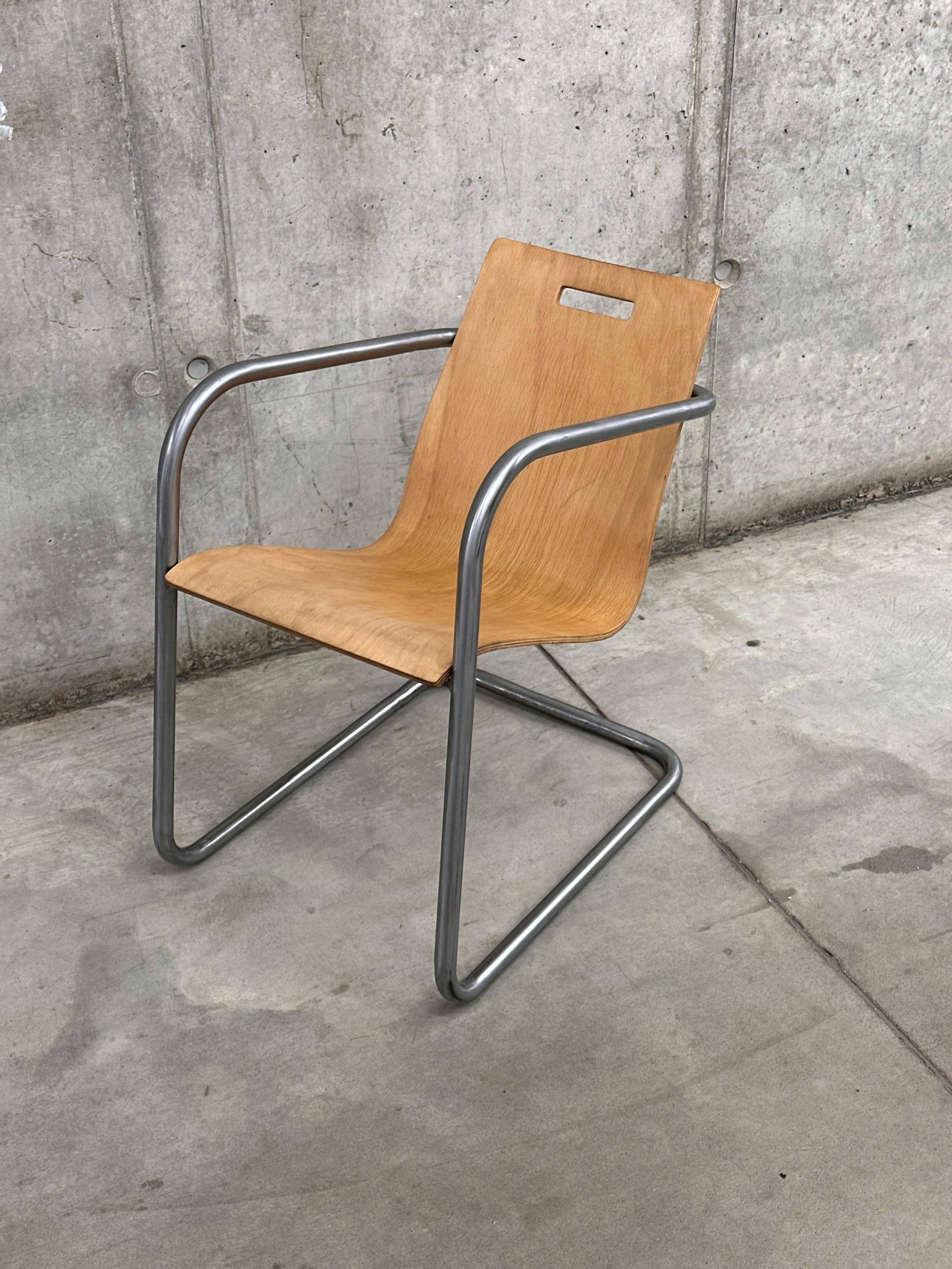 Discarded plywood mounted to hand-formed tubular steel