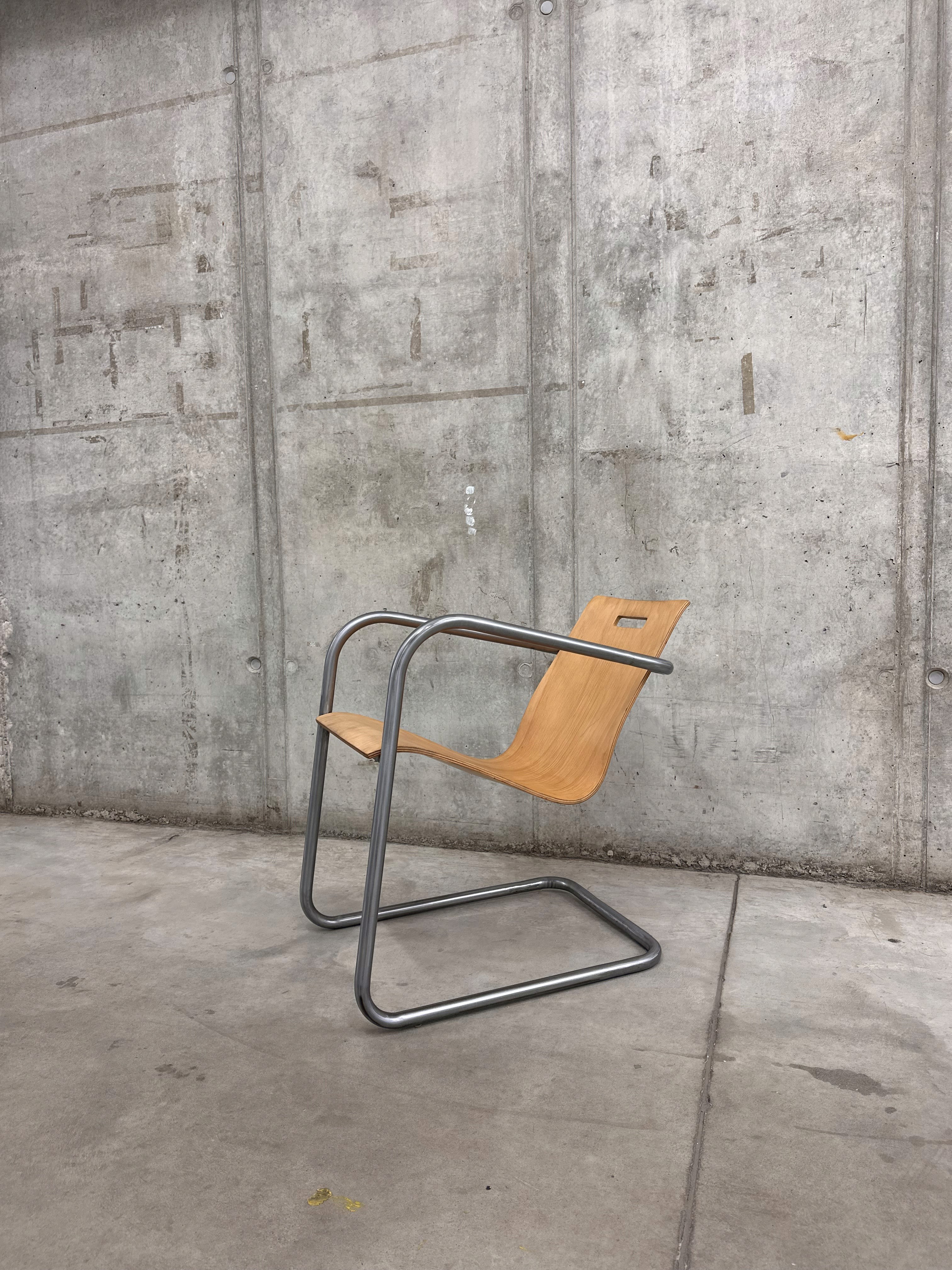 Recycled plywood, tubular steel. 2025
